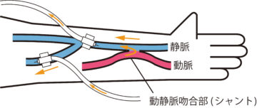 そのため、腕に「動静脈シャント」という専用の血管をつくる手術を行います。